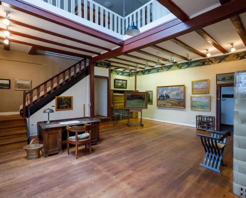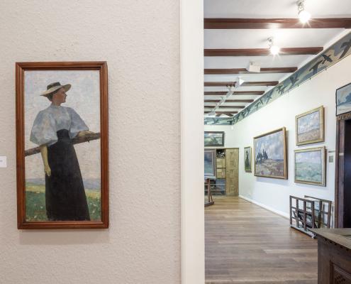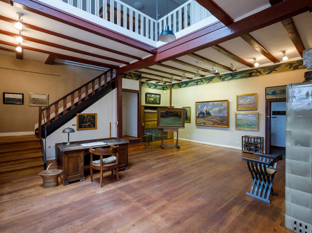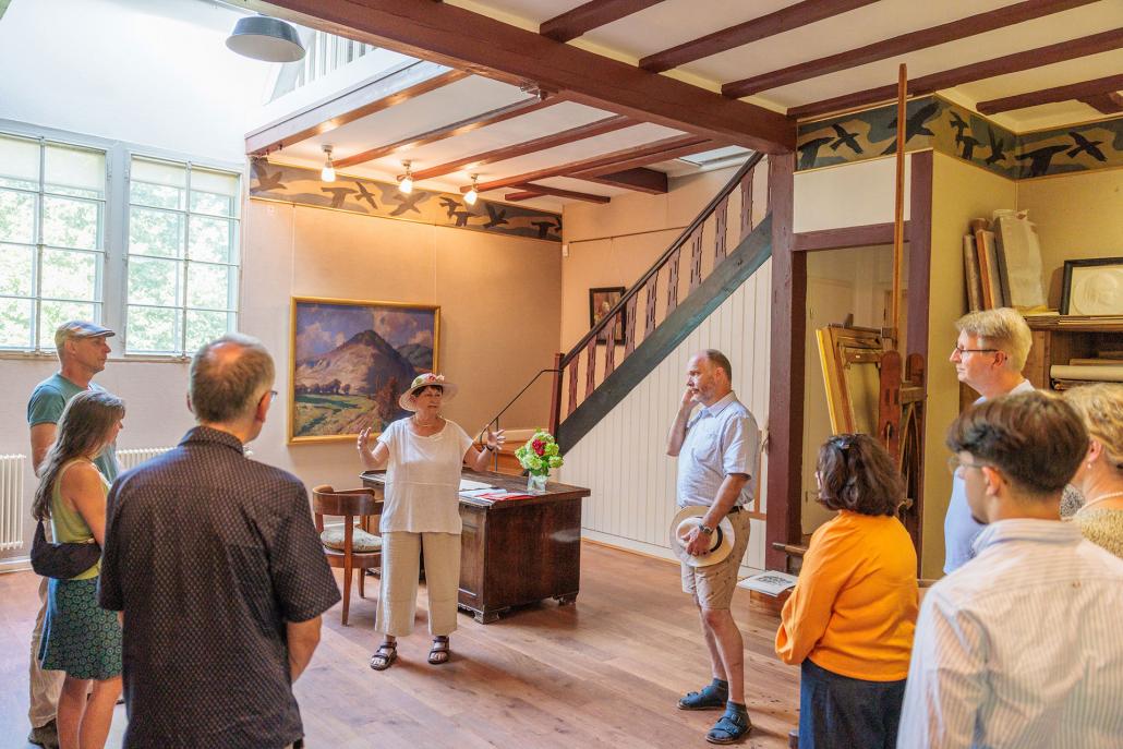 Wer, beispielsweise im Rahmen einer Führung oder auf eigene Faust, das frühere Atelier des Künstlers betritt, bemerkt schnell das große nach Norden ausgerichtete Fenster sowie das Oberlicht. „So hatte Ubbelohde den ganzen Tag über gleichmäßiges Licht für seine Arbeit,“ sagt Barbara Seitz. „Auch seinen Schreibtisch und eines seiner Original-Löschblätter kann man hier sehen. Dadurch, und durch die zeitlos schönen, von Ubbelohde selbst entworfenen Einbaumöbel, geht von dem ganzen Raum eine besondere Atmosphäre aus.“