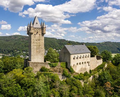 Weithin sichtbar erhebt sich die Silhouette der Burg Nassau auf…